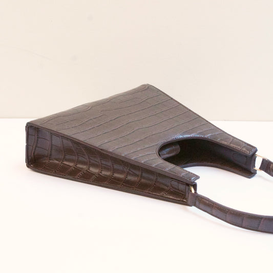 Sold outARIES Dark Brown Faux Croc Bag