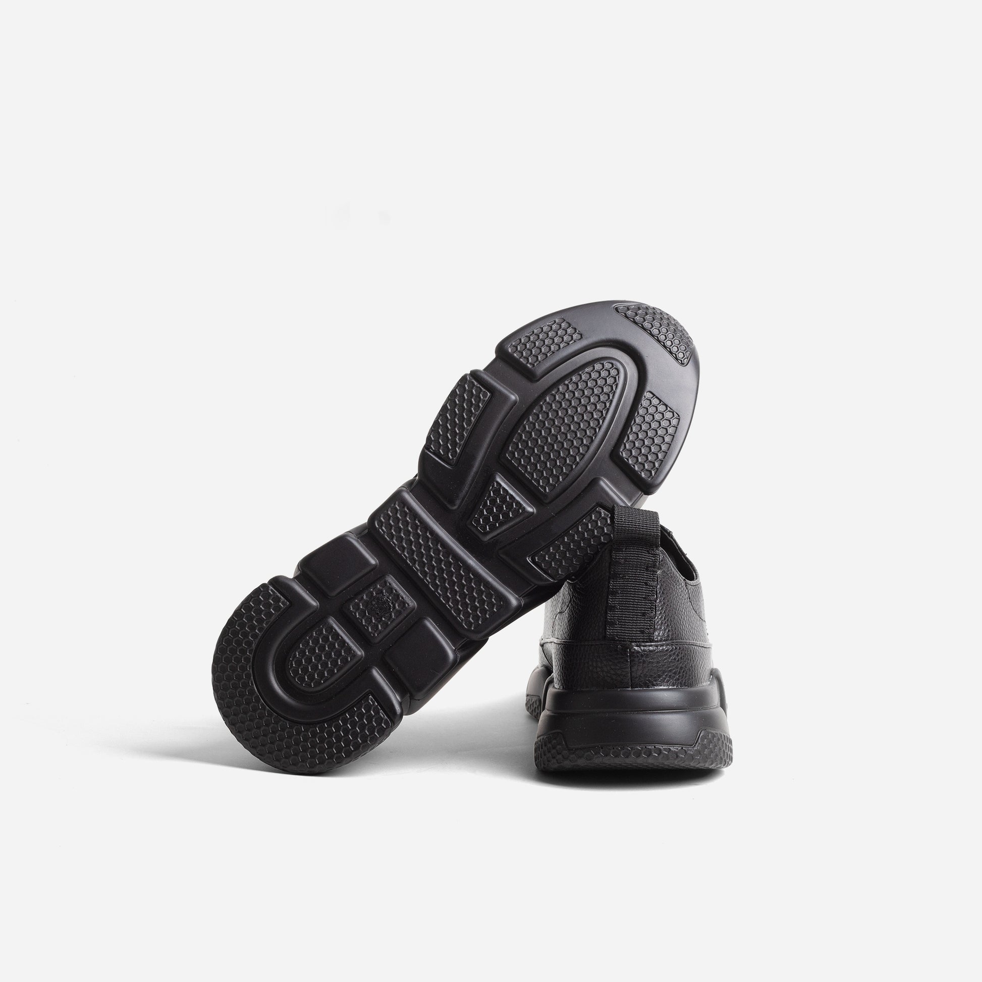 The GIA BLACK sneaker is an updated version of last seasons best sellers. Crafted from up-cycled faux leather paneling. Designed with a minimal, clean-cut and low top top silhouette. Featuring stitching detail around the side panels. Set on a comfortable 3 cm rubber sole.